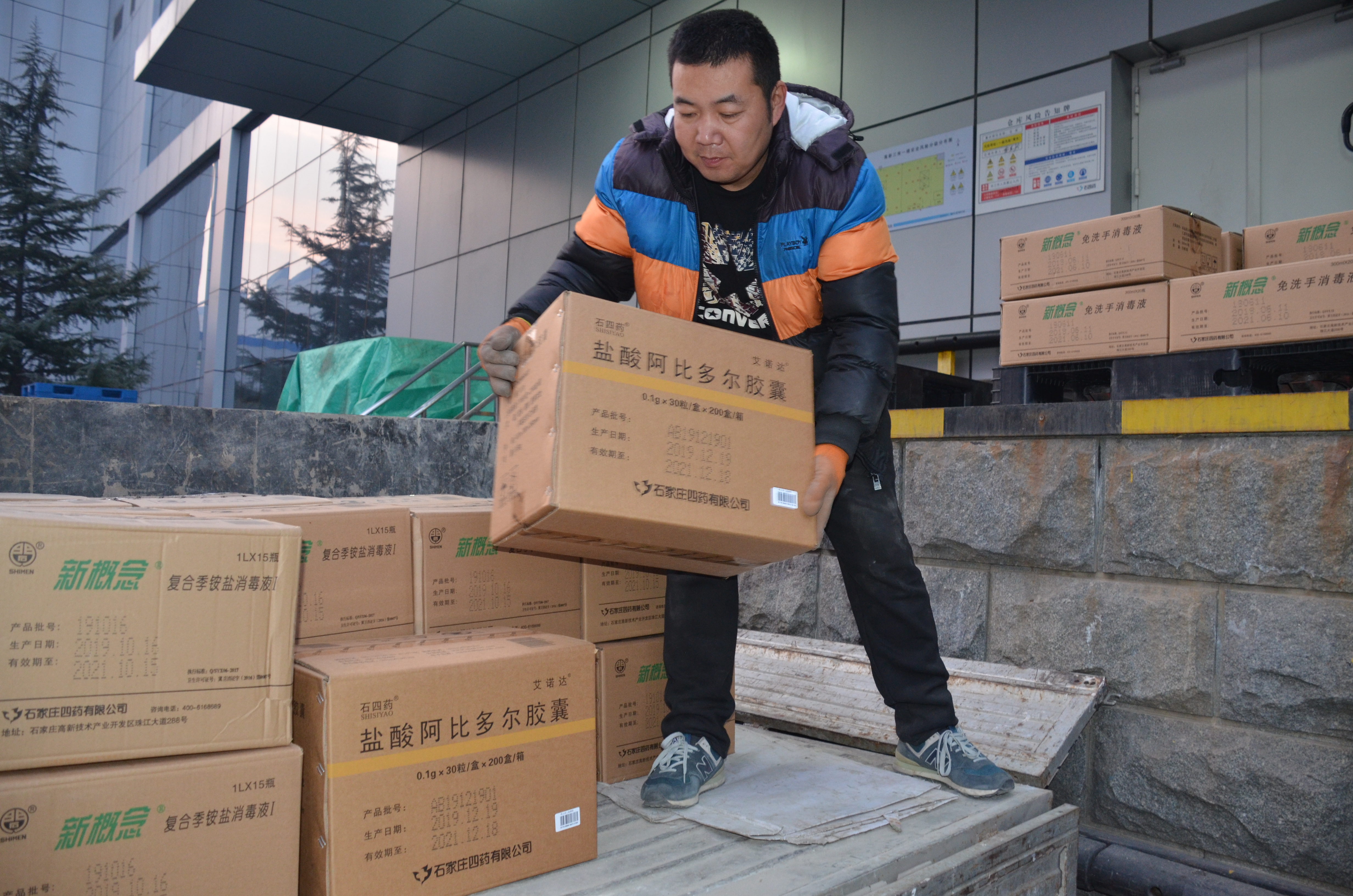 在高大的立体物流仓库前,紧急调来的货运车辆正整装待发。“目前,湖北、湖南、河南、辽宁等地客户急等要货,节前组织运力确实困难不少,运输和人力成本都很高,但无论如何得满足百姓健康需求是第一位的。”负责仓储管理的李立功经理介绍说,今年一月份以来,阿比多尔胶囊出库量已较上月同比增长513%。