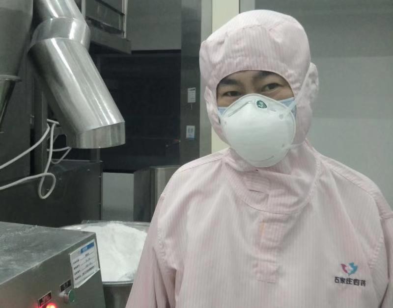 配料是口服制剂生产的第一道工序。一接到复产任务,配料岗位员工赵士峰便和另外两位同事一直在为车间扩大阿比多尔胶囊生产忙碌着。正月初一,赵师傅一大早就开始了一天的工作,一直忙到第二天的凌晨两点,才回到家中。" 阿比多尔胶囊生产任务紧,如果我们拖后腿儿,就会影响全车间的生产,加班也要完成。" 他说。