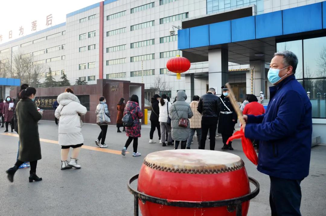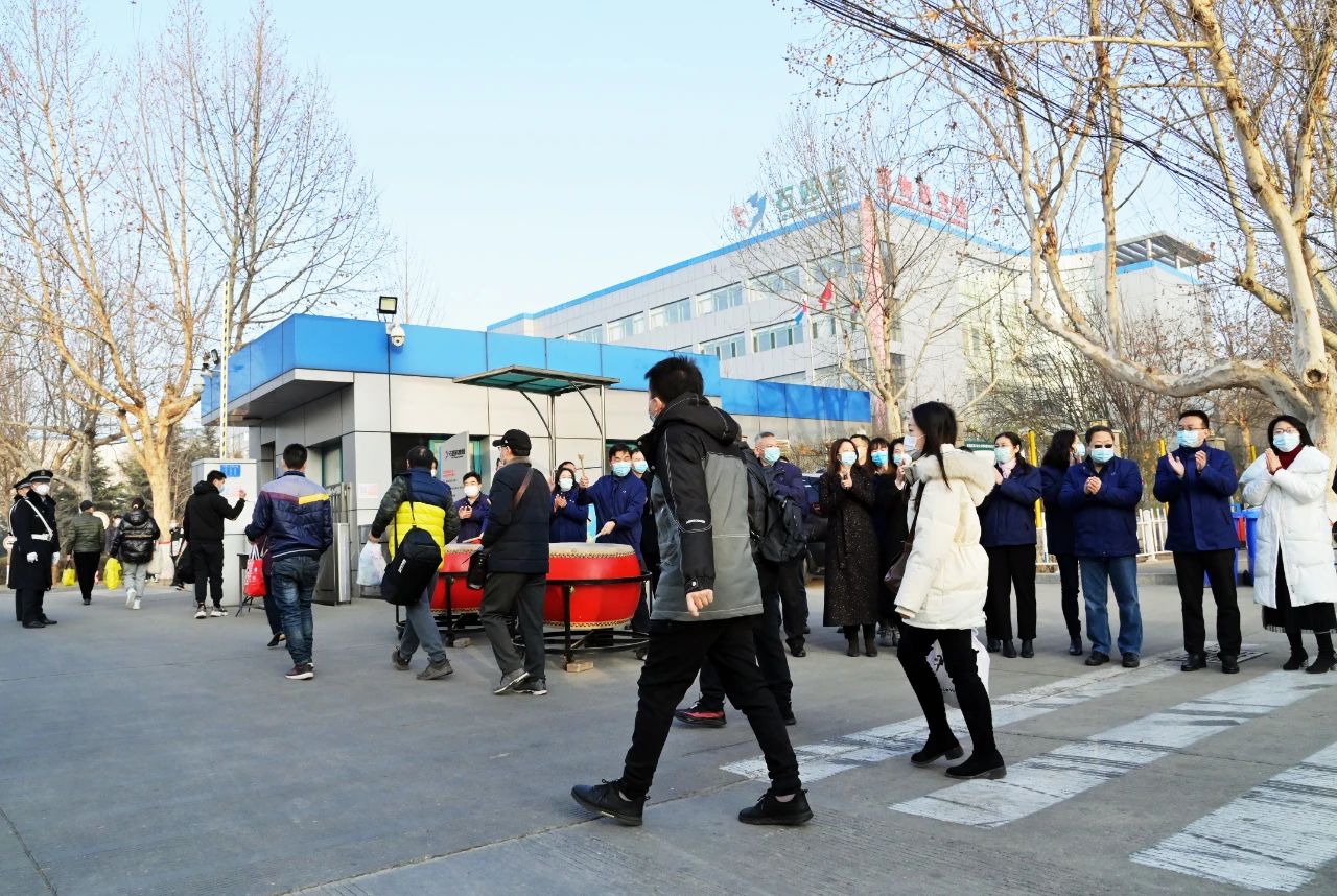 ▲正月初四,在石家庄高新区,石家庄ld官方网站_LD官方网站(中国)管理人员敲着欢庆的锣鼓迎接节后返岗的员工。
