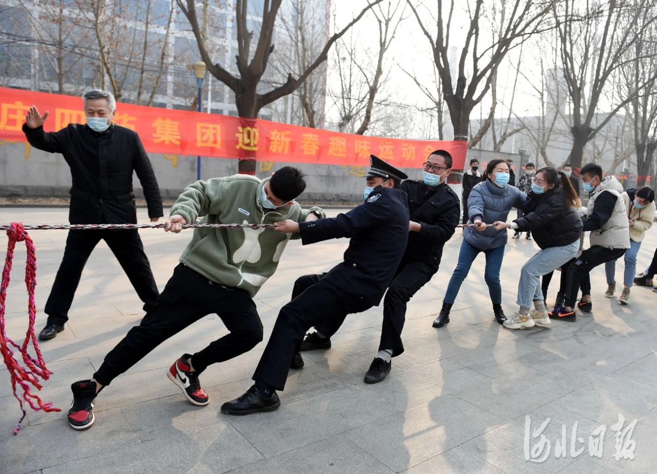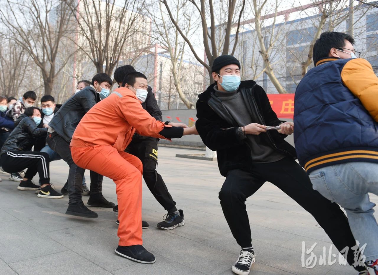 2021年2月12日,正月初一,河北省石家庄ld官方网站_LD官方网站(中国)有限公司留石就地过年职工在参加拔河比赛。河北日报记者 赵永辉摄