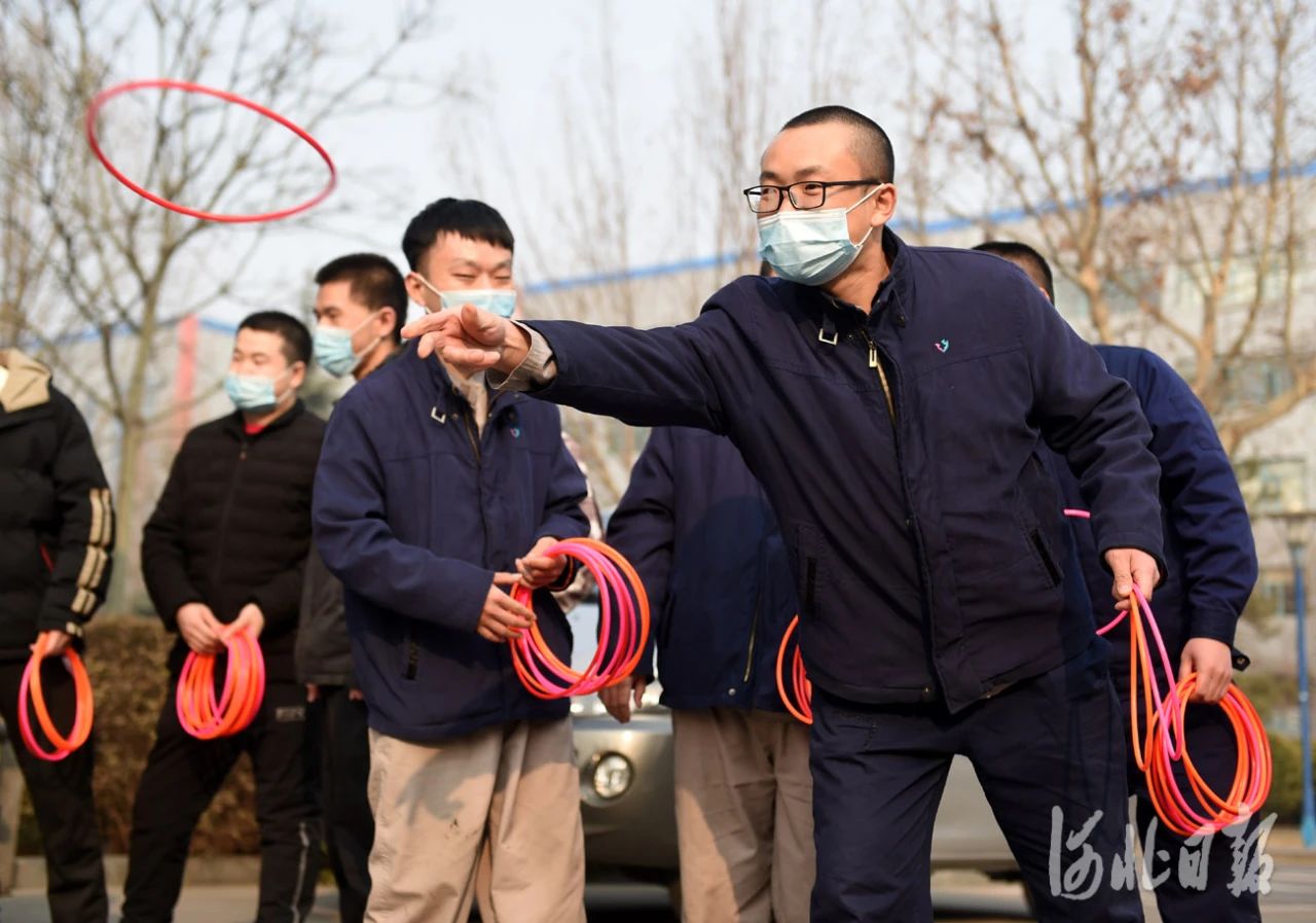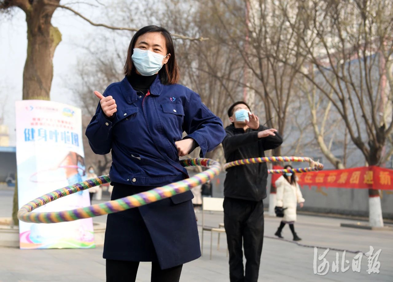 2021年2月12日,正月初一,河北省石家庄ld官方网站_LD官方网站(中国)有限公司留石就地过年职工在参加呼啦圈比赛。河北日报记者 赵永辉摄