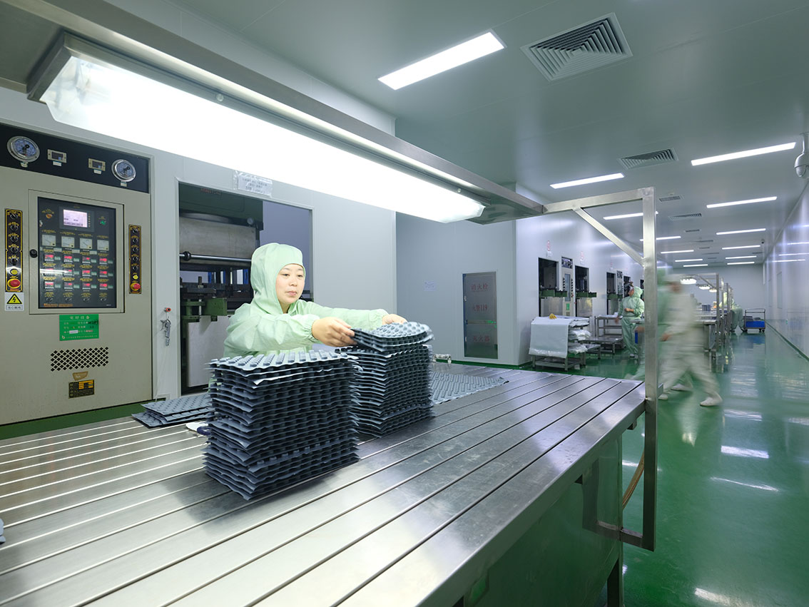 看准这一点,在集团的大力支持下,博生对标世界一流,引进了国外先进的生产和检测设备,拥有世界上先进的吹膜和分切设备,在线检测反馈系统能有效地保证输液膜的质量偏差纠正;拥有先进的自动化胶塞生产线,生产车间严格按照GMP标准设计建造,在行业内率先实施免清洗胶塞生产工艺,配置了汽水四级分离多效蒸馏WFI系统,采用TOC在线监测,确保免清洗胶塞产品质量达到CP、EP、USP标准,配套的胶塞外观在线自动全检系统更有效地保证了产品的质量,大大提高了智能制造的“硬”实力。